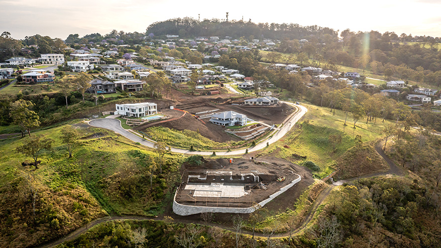 St Peters Close is a premium 13-lot residential subdivision located on the Escarpment in Mt Lofty, Toowoomba. The development’s close proximity to the edge of the Toowoomba range required significant geotechnical investigations to inform the design.